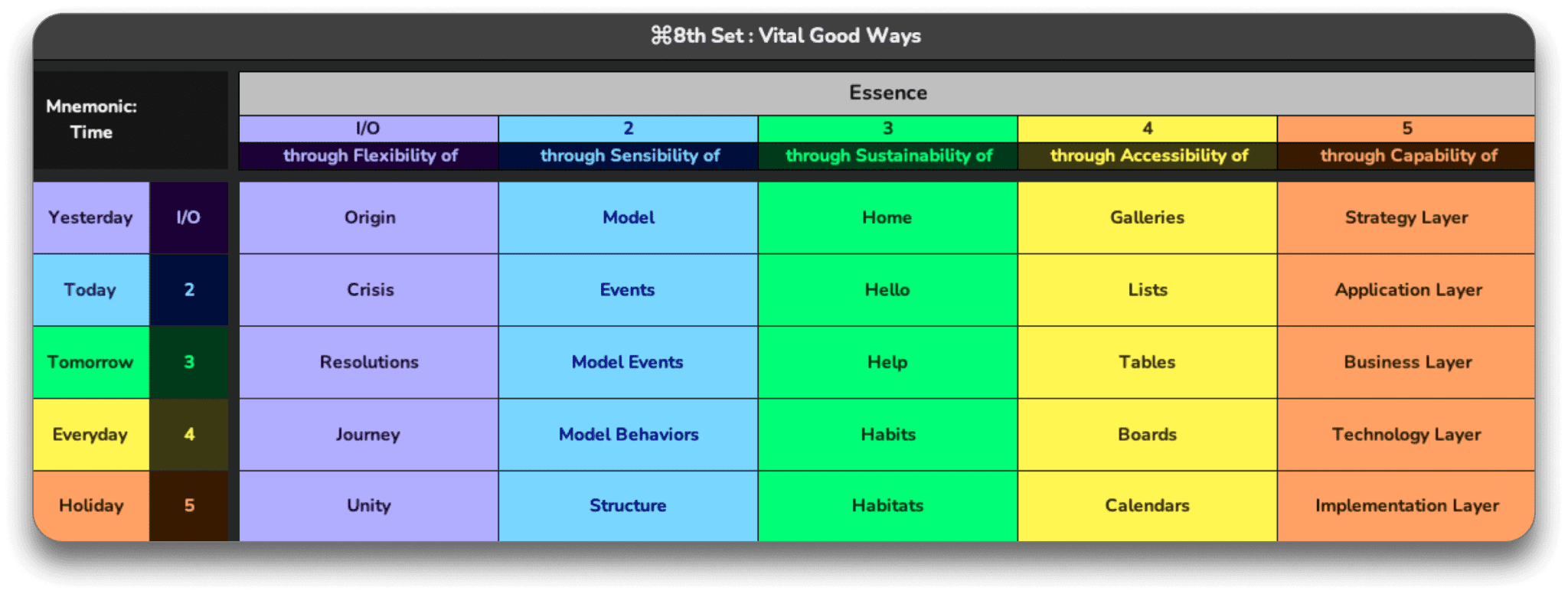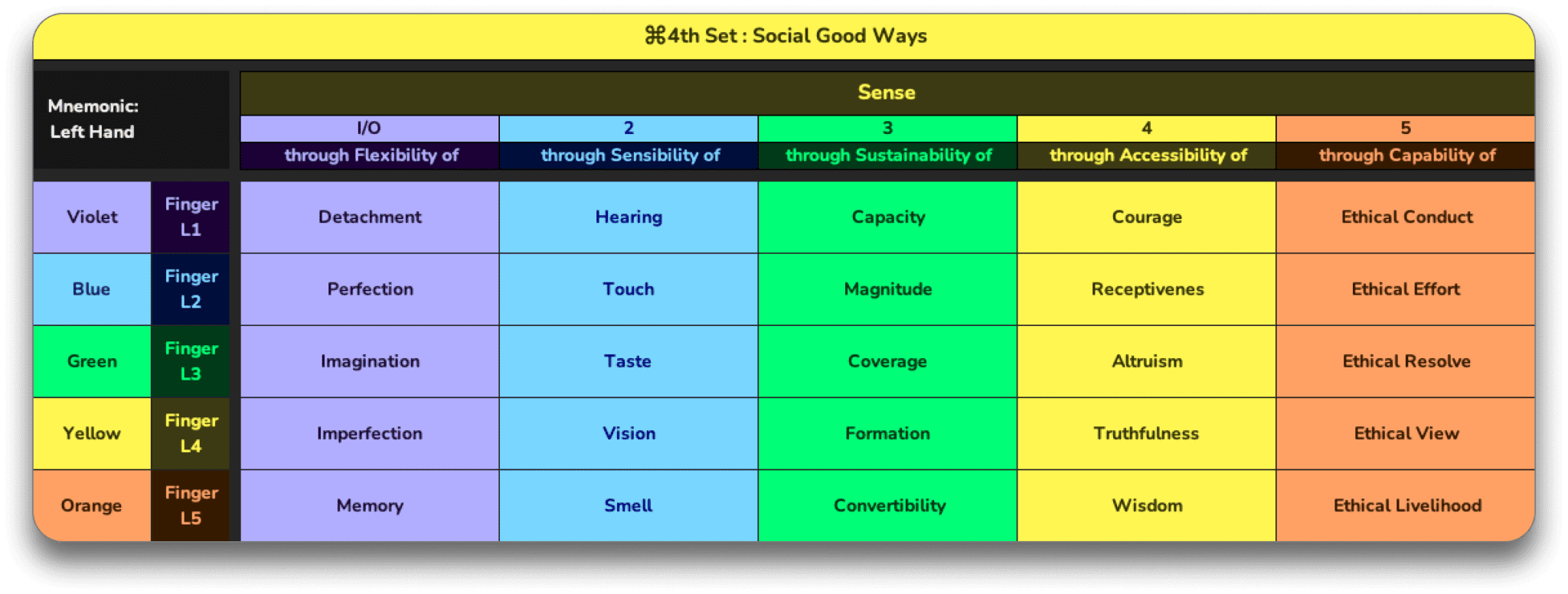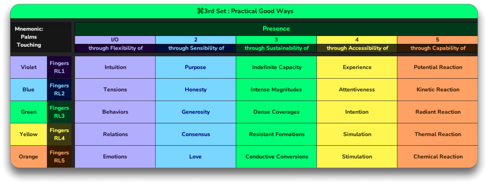 Just as a color palette provides a comprehensive range of colors for an artist to use, the Good Ways Model, on its Plus Edition (Full), provide a comprehensive mapping of all types of good ways, allowing individuals to fully explore the crisis of each possibility. Within these Sets, there are 8 Standard ways that serve as a foundation, and an additional 205 Dependent ways that build off of these Standards, providing a rich and varied landscape of possibilities to explore.